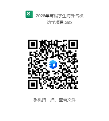 同时微信扫描下方二维码或打开链接地址,在线填写2026年寒假海外名校访学项目信息登记表。链接地址:https://365.kdocs.cn/l/chEzWJCkGo13
