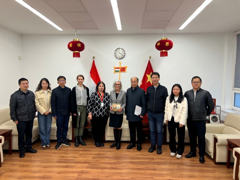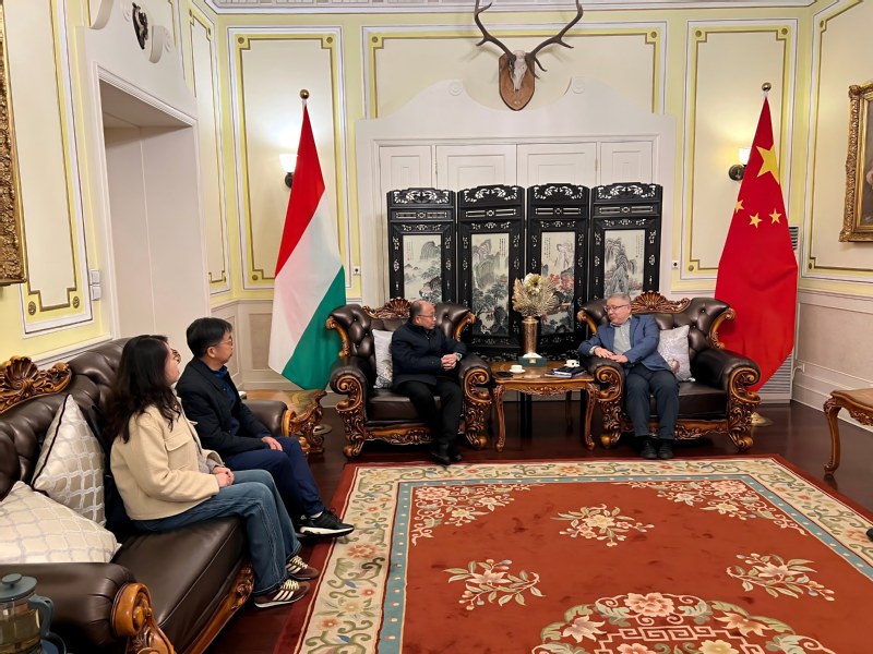 随后,代表团拜访了中国驻匈牙利大使馆,教育参赞韩东升、文教处李杰灵主任接待了代表团。韩东升参赞表达了对于南通大学代表团的欢迎。他介绍了匈牙利的发展历史、当地的地理区位特征。近年来匈牙利政局稳定,并且与中国保持着积极的合作联系。目前也有大量的中资企业在匈牙利发展。韩东升还介绍了匈牙利高等教育发展情况,尤其是当地几所知名高校的学科特色和国际化活动。他殷切期待南通大学在促进中匈合作,为当地提供人文交流和科研合作等方面提供积极的力量。杨宇民对于韩东升的接待表示感谢,他介绍了南通大学的发展历史和专业特色、期待大使馆努力推动促进中匈之间的高校合作,为南通大学师生赴匈牙利交流交换提供链接的桥梁,在政策上提供支持和保障。