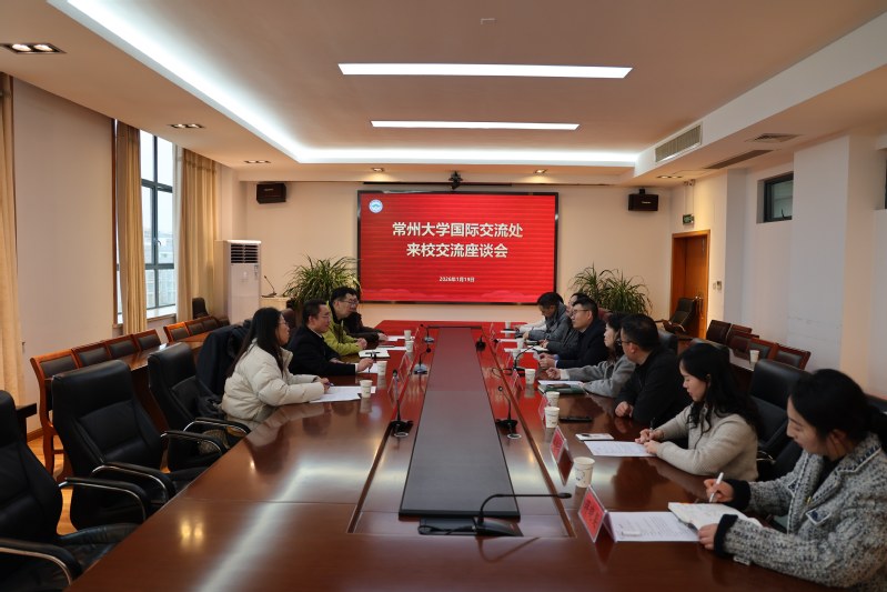1月19日,常州大学来我校开展国际合作与交流工作调研交流。校长王建浦、校党委副书记王卫东出席座谈会。