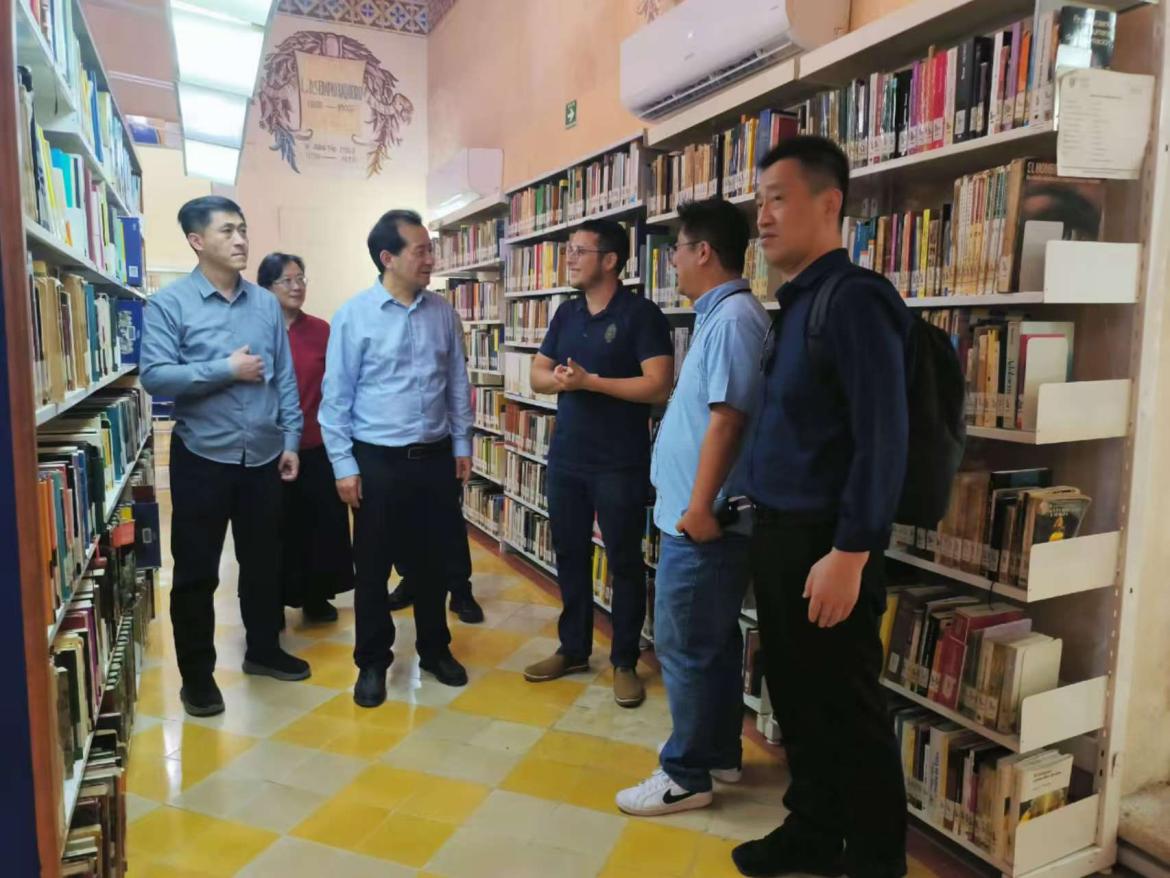 在墨西哥维拉克鲁斯大学,代表团分别会见了该校国际合作团队及孔子学院负责人。在与国际化事务总干事Juan Ortiz Escamilla博士率领的校方团队会谈中,中国-维拉克鲁斯研究中心主任Aníbal Zottele博士、语言中心主任Frank Ramírez Marín博士,以及学生与学术交流处、学术合作处、外国留学生学院、项目与服务协调处等部门负责人共同参与。双方围绕在数字人文、语言技术与跨学科研究等领域拓展合作的可能性进行了务实探讨,并约定尽快签署校际合作协议,在框架下系统推进学生交流互访、联合研究平台建设等项目。访问期间,代表团还与该校孔子学院外方院长Dra. Celia Magdalena Sánchez Sosa博士、中方院长宋国强教授进行了专项交流,深入了解了孔院在语言教学、文化推广与学术联结方面的工作成果与特色经验,为进一步推动中墨高校深度合作探索了可行路径。